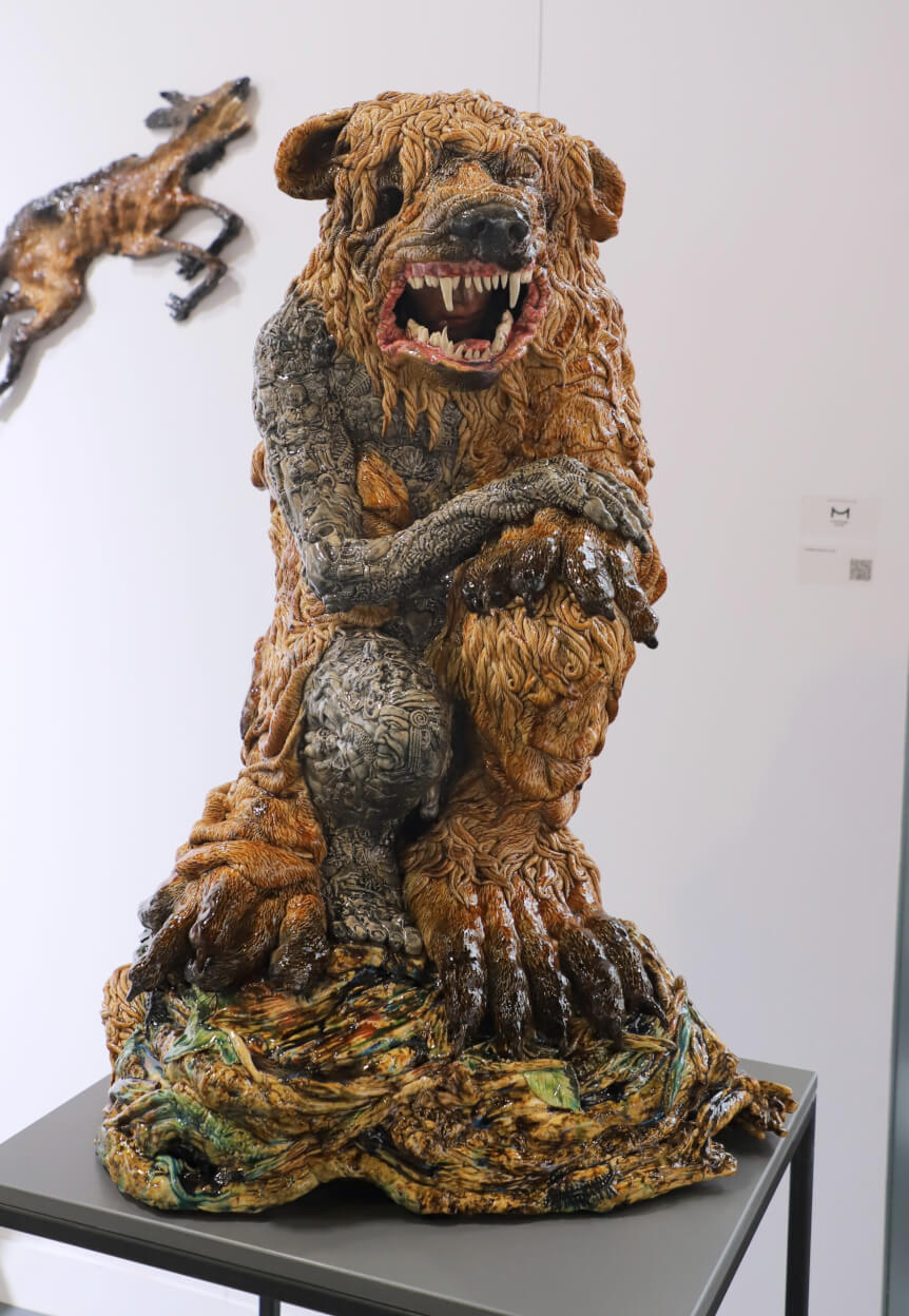 Les grandes galeries d’art contemporain généralistes ne sont pas encore présentes mais un de mes amis grand connaisseur du marché de l’art m’a dit « elles y viendront ». Dont acte. Comme, il faut l’espérer, les galeries extra européennes. Ceramic Brussels présente la céramique de l’Europe occidentale continentale. A l’heure de la remise en question de la domination occidentale du monde, il demeure ici un décalage qui ,pourrait devenir dommageable à terme. La belle présentation de l’artiste Paraguayenne Julia Isidrez donnant une interprétation nouvelle à l’art guarani, proposée par la galerie Sorry W’re Closed grâce au regard de Sébastien Jansen donnait un ouverture au monde qui a saisi beaucoup d’entre nous. Peut-être faut-il aider des galeries extra européennes à venir elles même présenter leurs propres choix.
